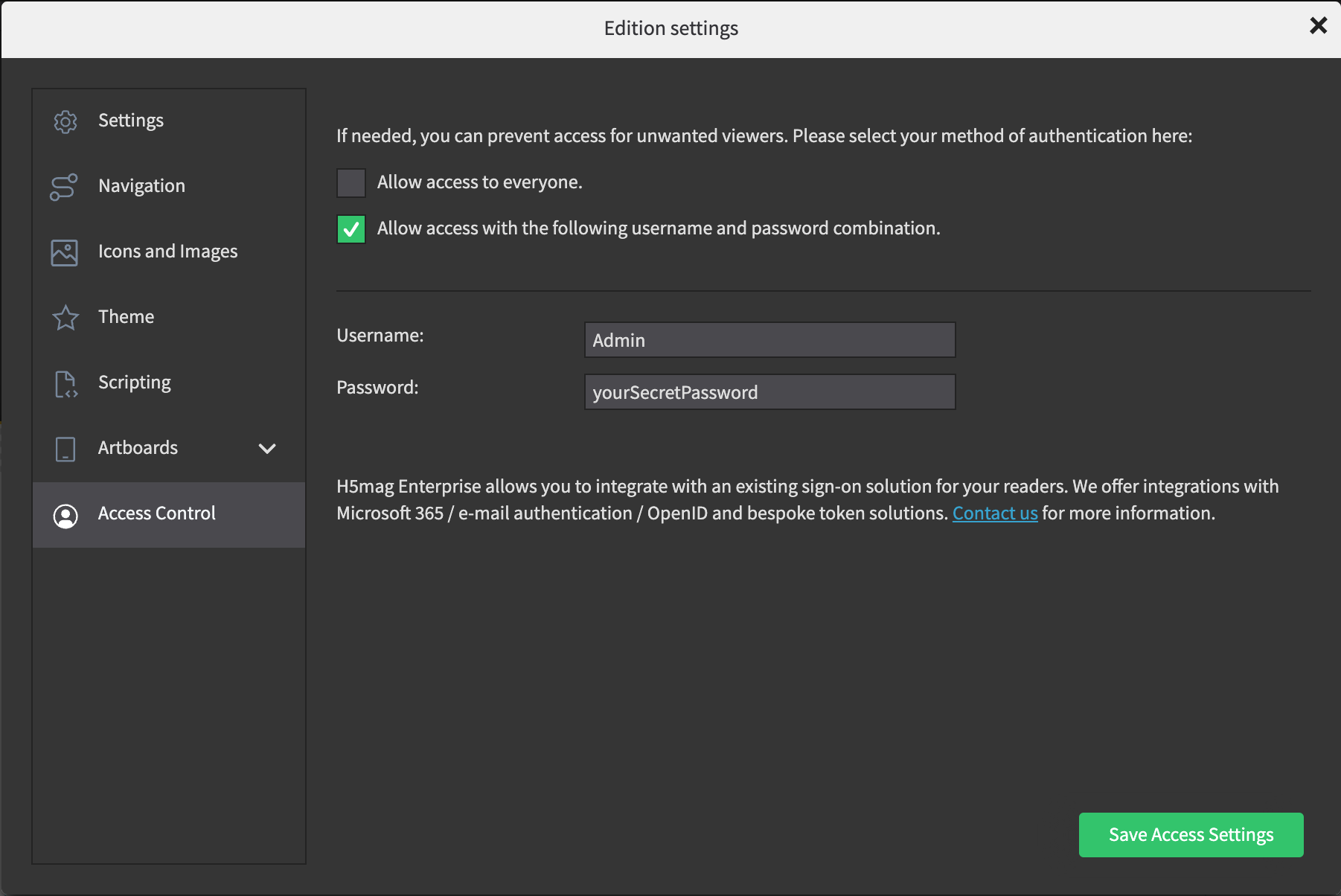 4. Fill a username and password. Every reader needs to fill in this username and password to access your publication