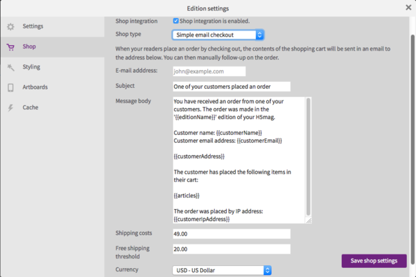 Configuring the shop