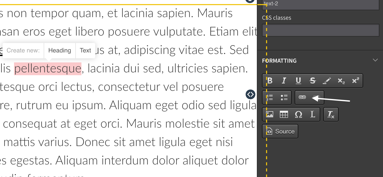 - Click on the link icon: Within the formatting options of the text editor, locate the link icon and click on it.