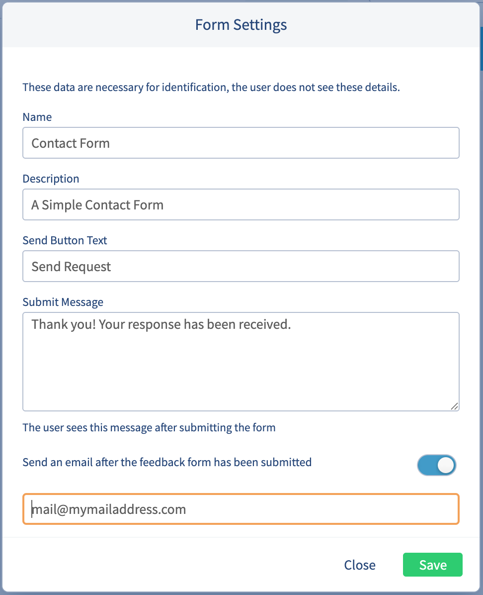 - Submit Message – The confirmation message displayed to readers after they submit the form (e.g. “Thank you for your feedback!”).