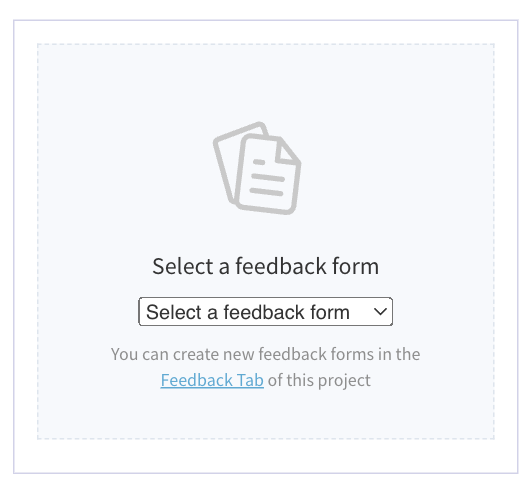 Click on Advanced ► Feedback - You can choose a form using the input selector in the area. It's also possible to change the form using the area settings panel. Which can be accessed by clicking the blue gear button.