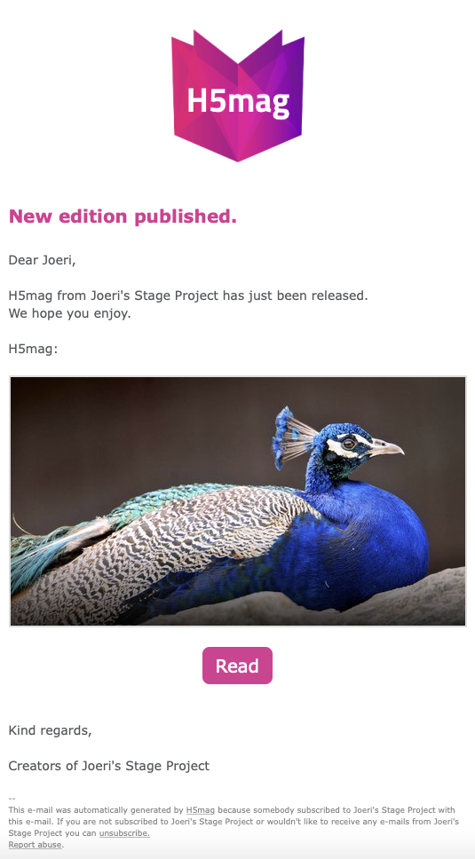 Upon subscribing your subscriber will receive a confirmation e-mail. This e-mail has by default almost the same layout as the notification e-mail. The e-mail will thank your new subscriber for subscribing and will contain information about your latest published edition.